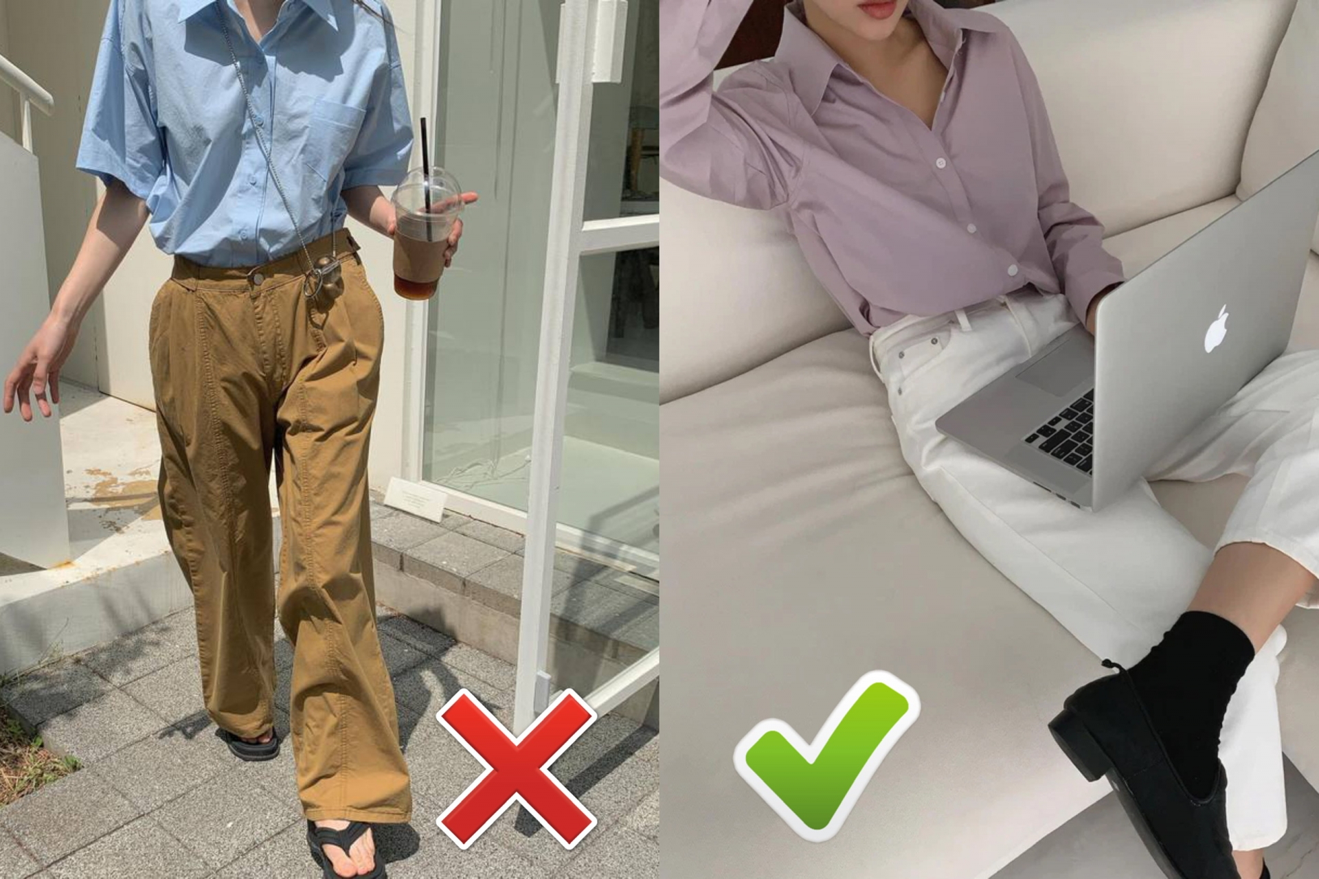 Khi diện đồ oversized, chị em phải có cách mix and match để tổng thể trông gọn gàng hơn, ví dụ như sơ vin hoặc kết hợp quần áo theo nguyên tắc "trên rộng - dưới ôm" và ngược lại. Còn tốt hơn hết là bạn chỉ nên mua những item có phom dáng ôm vừa vặn lấy cơ thể để tôn dáng nhất nhé.