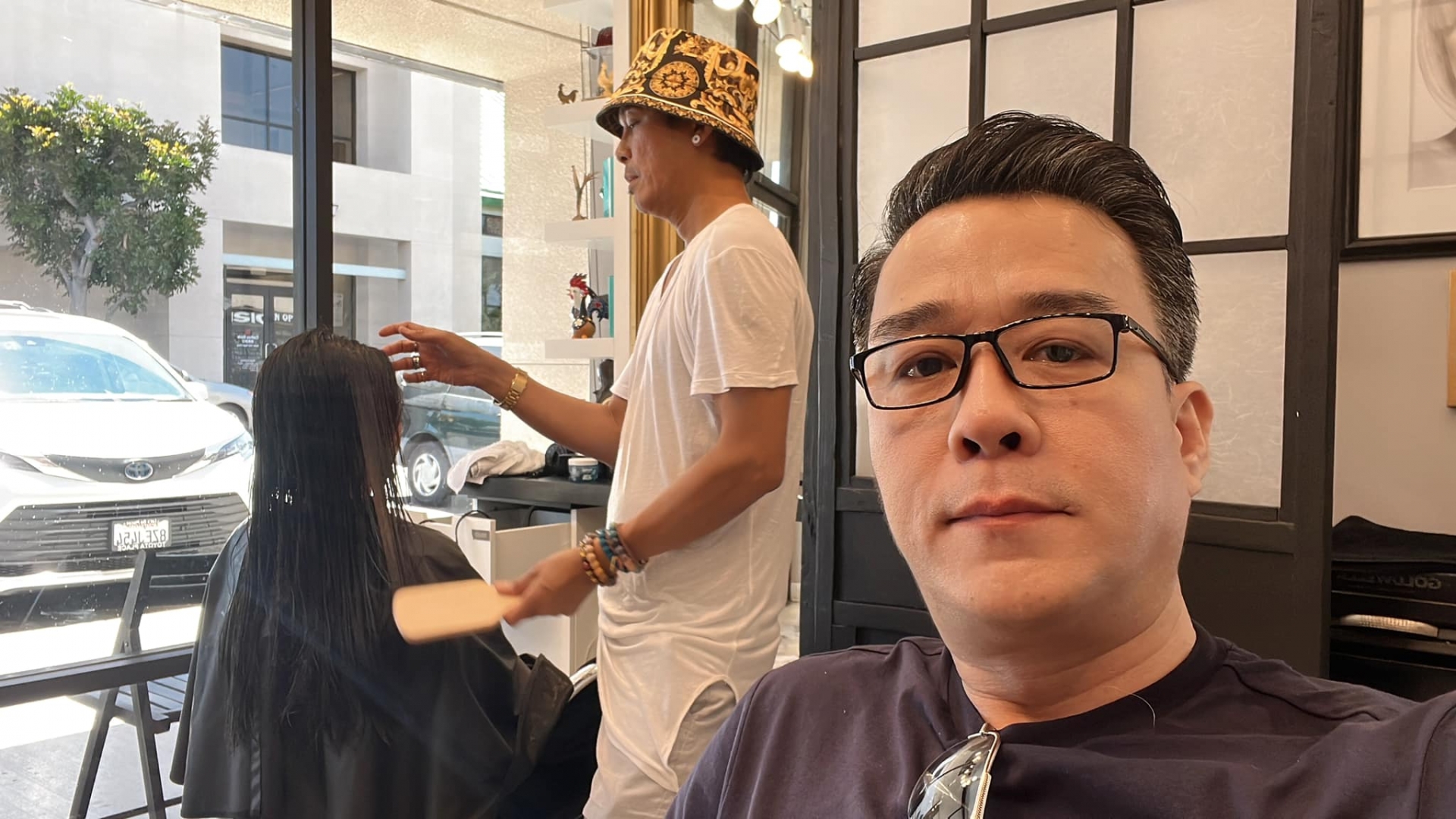 Sau khi được vợ trẻ làm đẹp, Thắng Ngô cũng kiên nhẫn ngồi đợi Hà Thanh Xuân cắt tóc, tân trang nhan sắc. Theo địa điểm check in, vợ chồng "vua cá koi" đang tận những giây phút thư giãn, thoải mái trên đất Mỹ. Loạt hình mới của nam doanh nhân đã nhanh chóng thu hút sự chú ý. "Anh Thắng đươc vợ gội đầu cho thích lắm nhá", Anh chị thật hạnh phúc", "Dễ thương quá"... là một số bình luận đáng chú ý.