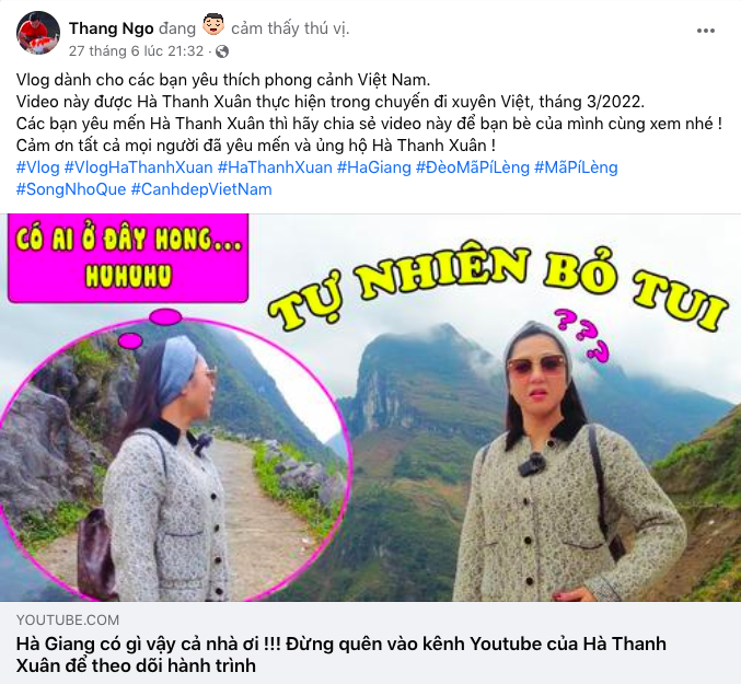 Không những thường xuyên chia sẻ những khoảnh khắc tình tứ bên Hà Thanh Xuân, doanh nhân Thắng Ngô thể hiện sự ủng hộ tuyệt đối với vợ khi liên tục chia sẻ những tác phẩm nghệ thuật hay vlog đời thường của cô trên trang cá nhân.