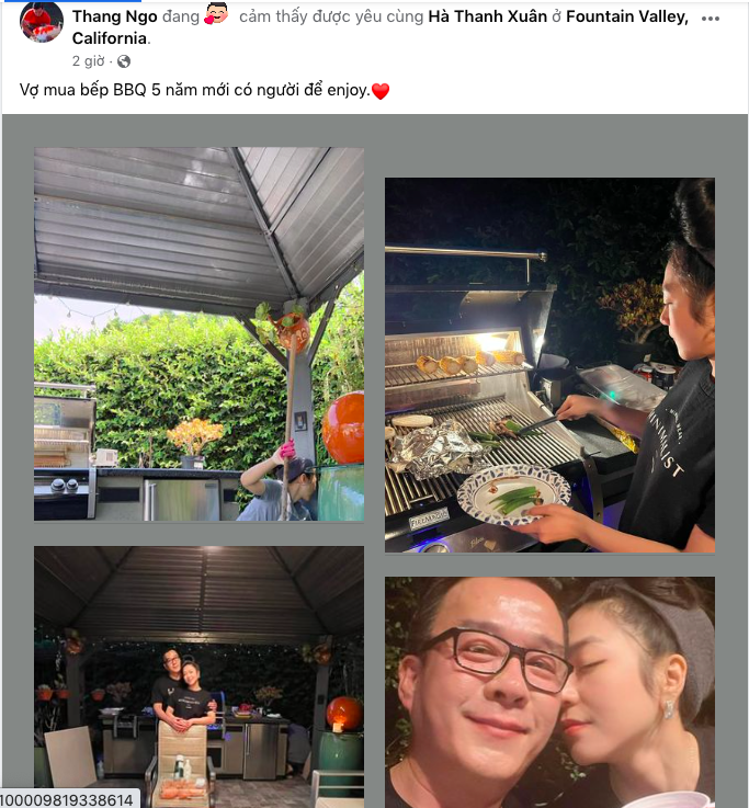 Nam doanh nhân tiết lộ: "Vợ mua bếp BBQ 5 năm mới có người để enjoy". Dòng trạng thái này thể hiện trước khi đến với Thắng Ngô, Hà Thanh Xuân sống một mình trong căn nhà rộng lớn, không có ai cùng tận hưởng những bữa tiệc nướng vui vẻ.